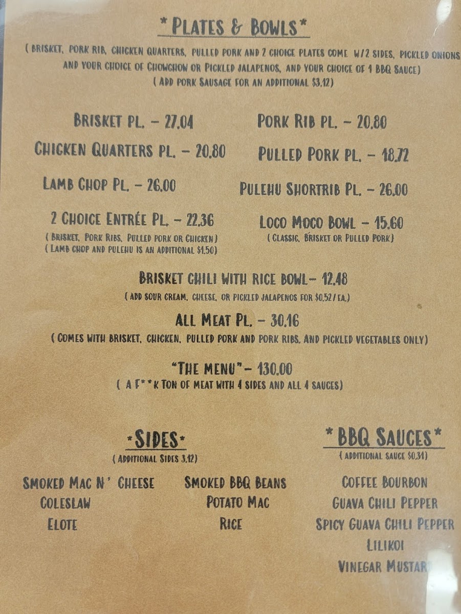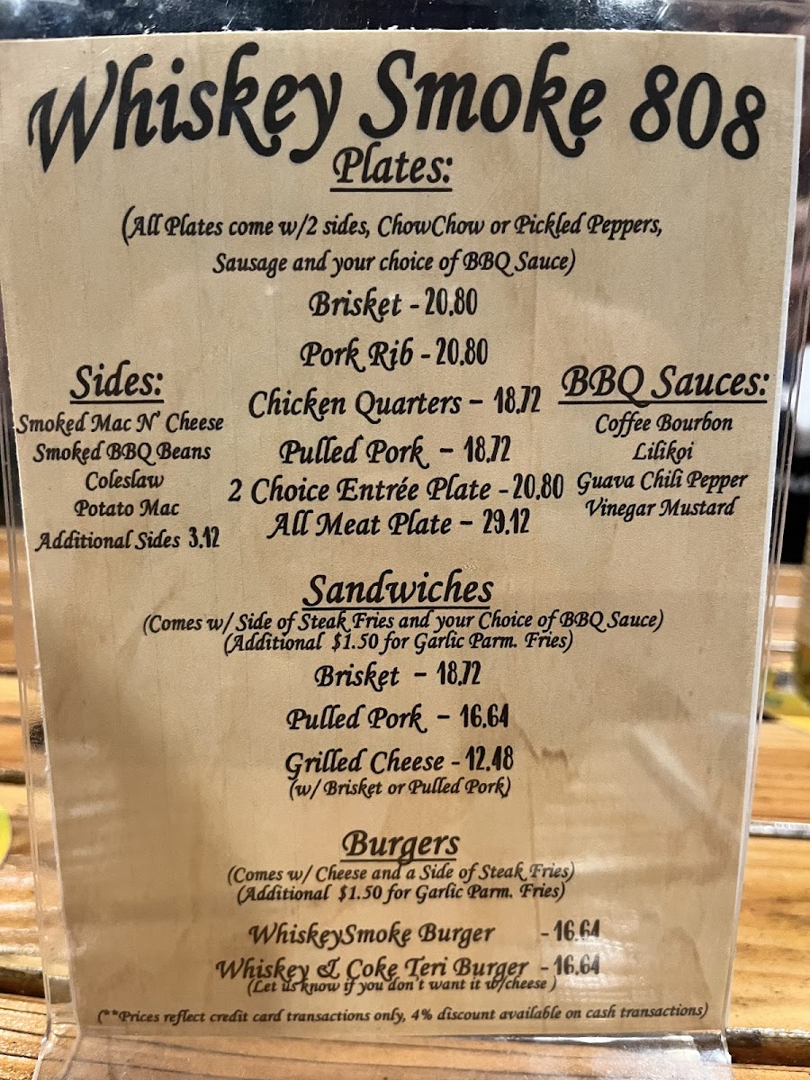 Welcome to Whiskey Smoke 808, a hidden gem nestled in Kaneohe, HI. This barbecue restaurant invites you to indulge in an authentic smoky experience that satisfies any BBQ craving. Their menu showcases a tantalizing array of dishes, highlighted by Dino Beef Ribs, expertly smoked to perfection, and juicy Pulled Pork Sandwiches that have garnered rave reviews.