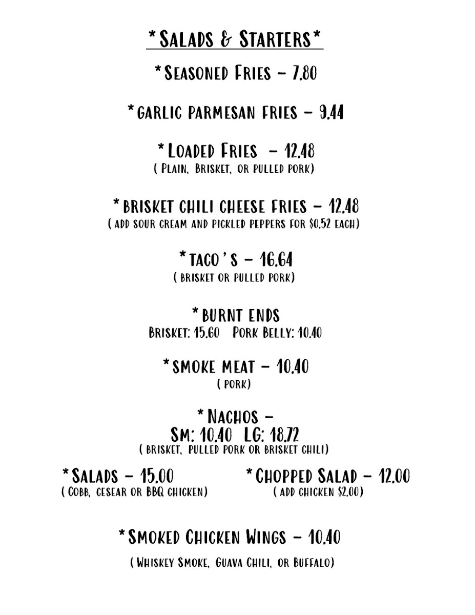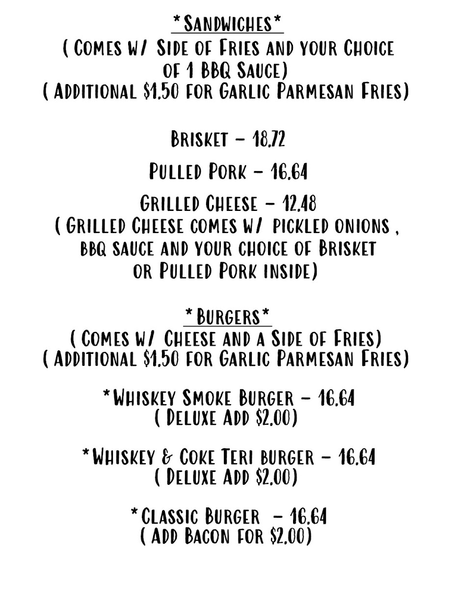Whiskey Smoke 808 Menu